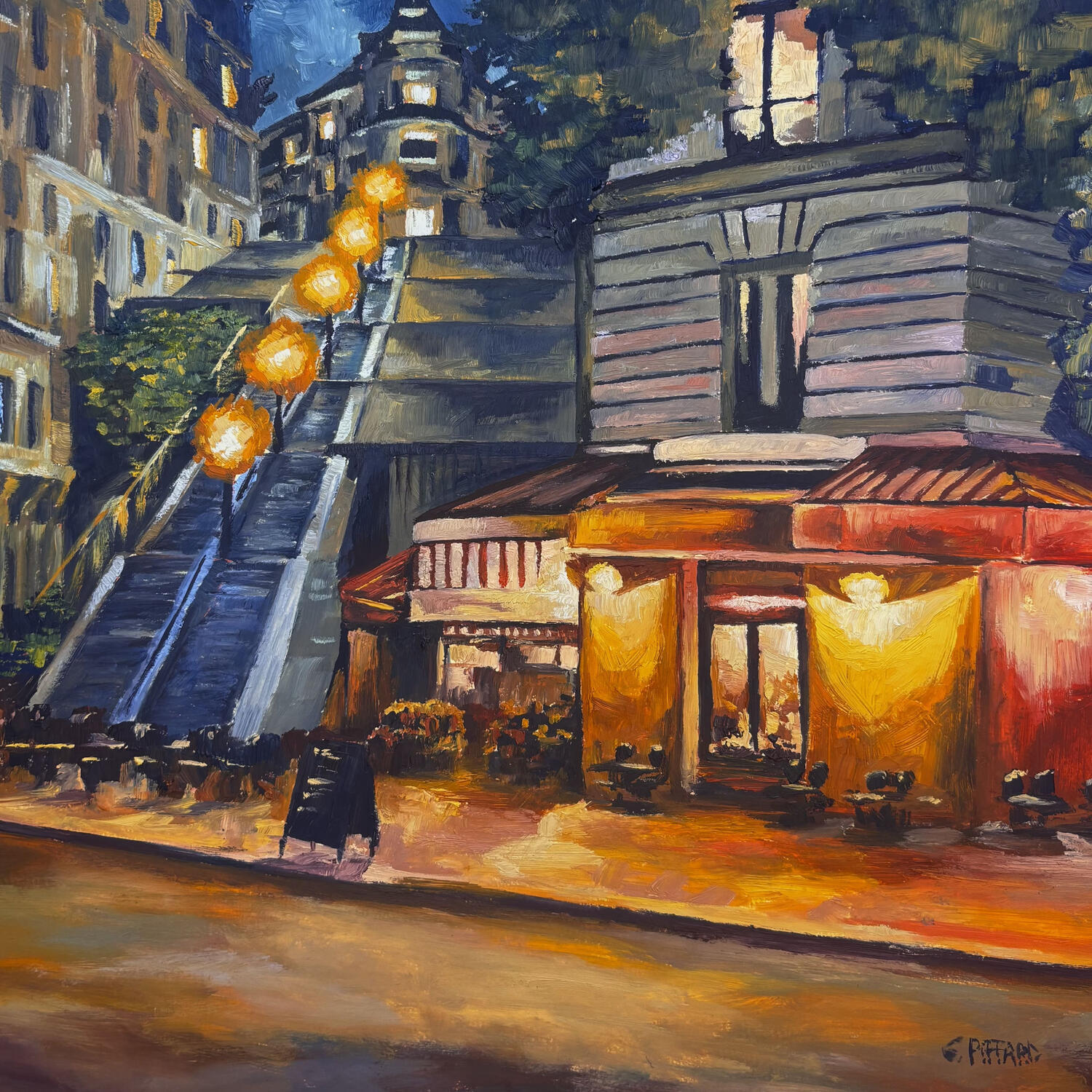 Painting Paris, la nuit #4 by Piffard Cédric | Painting Figurative Urban Life style Architecture Oil