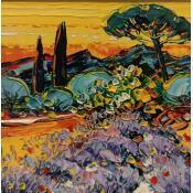 This unique and original contemporary artwork "Lavnde et fleurs sauvages" on the subject of Landscapes has been created by the contemporary artist Corbière Liisa.