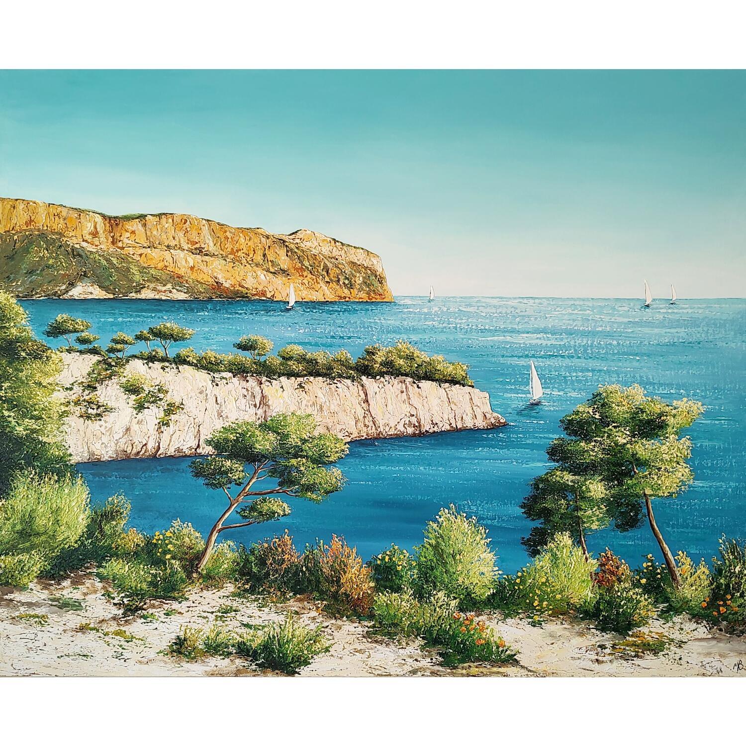 This unique and original contemporary artwork "Calanques de Cassis" on the subject of Landscapes has been created by the contemporary artist Blandin Magali.