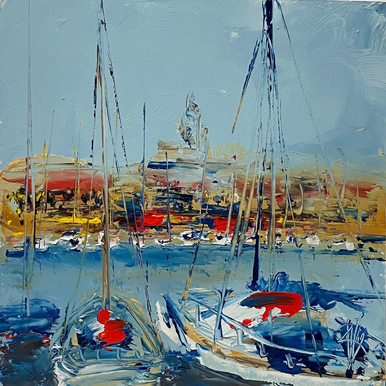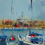 This unique and original contemporary artwork "Juste au port" on the subject of Marine has been created by the contemporary artist Raffin Christian.