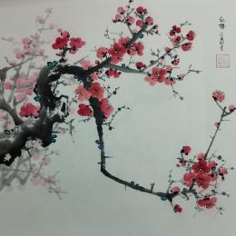 This unique and original contemporary artwork "Red blossom" on the subjects of Nature, Landscapes has been created by the contemporary artist Du Mingxuan.