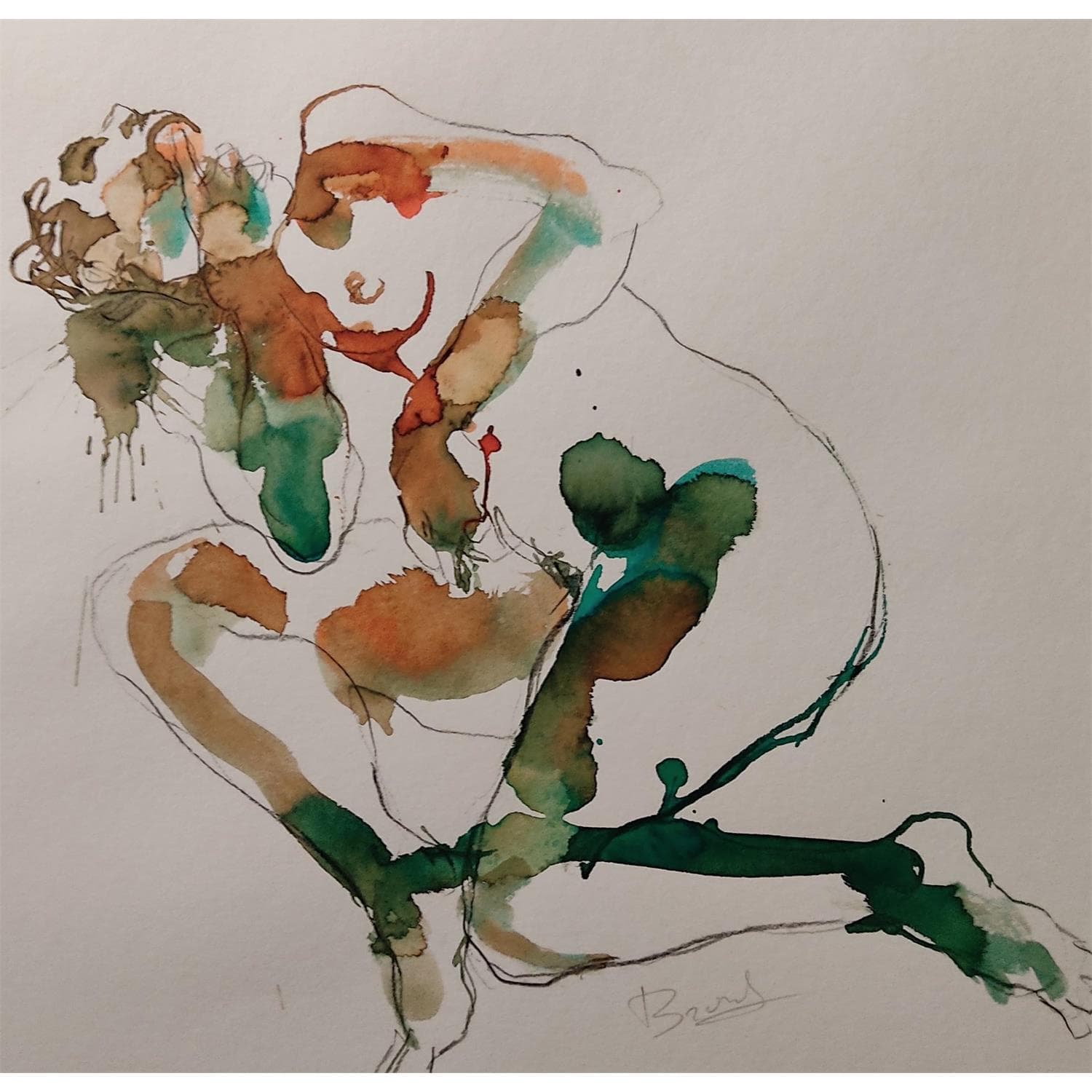 lydie couchée une main au mentonPainting lydie couchée une main au menton by Brunel Sébastien | Painting Figurative Nude Watercolor