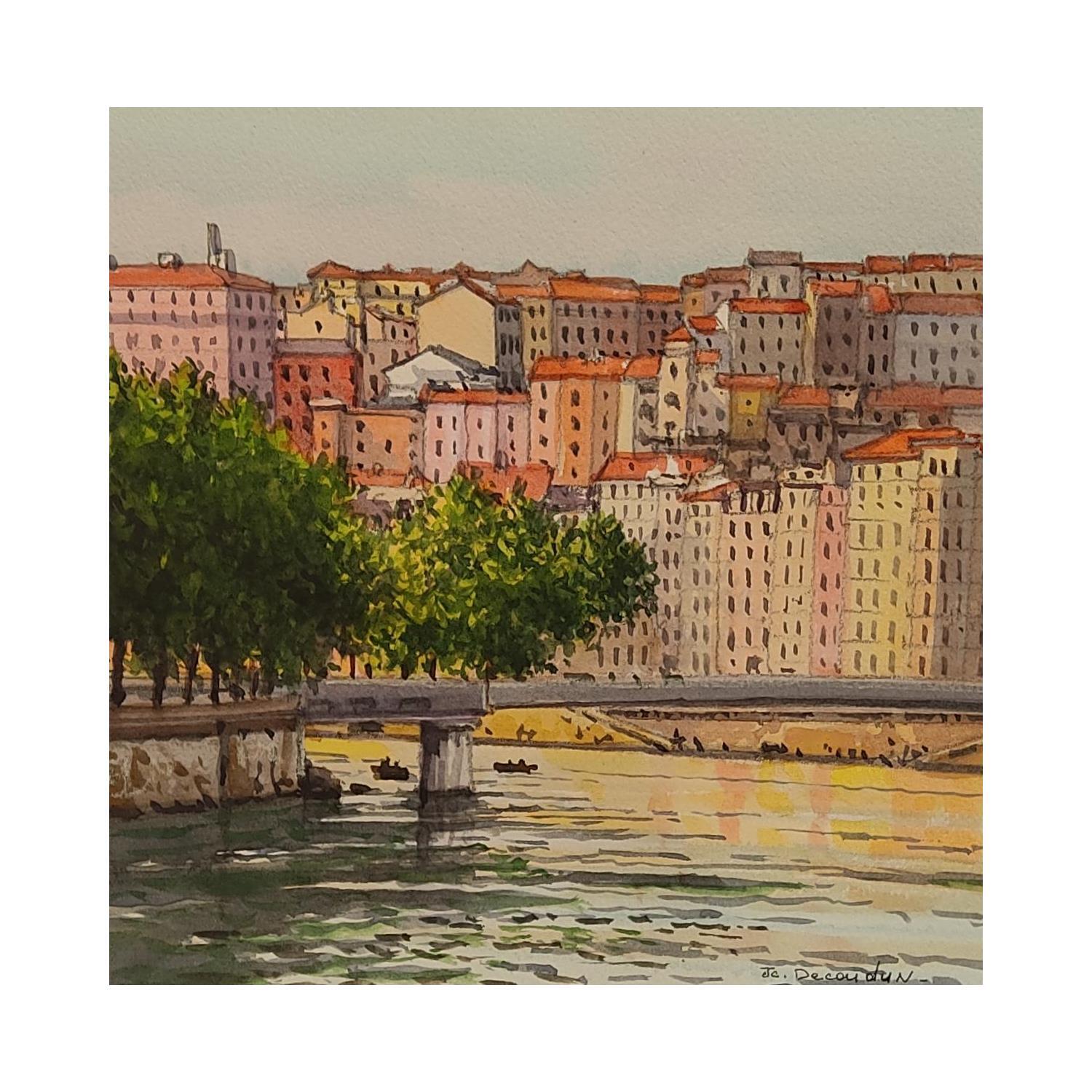 Painting Lyon la coline qui travaille by Decoudun Jean charles | Painting Figurative Urban Watercolor