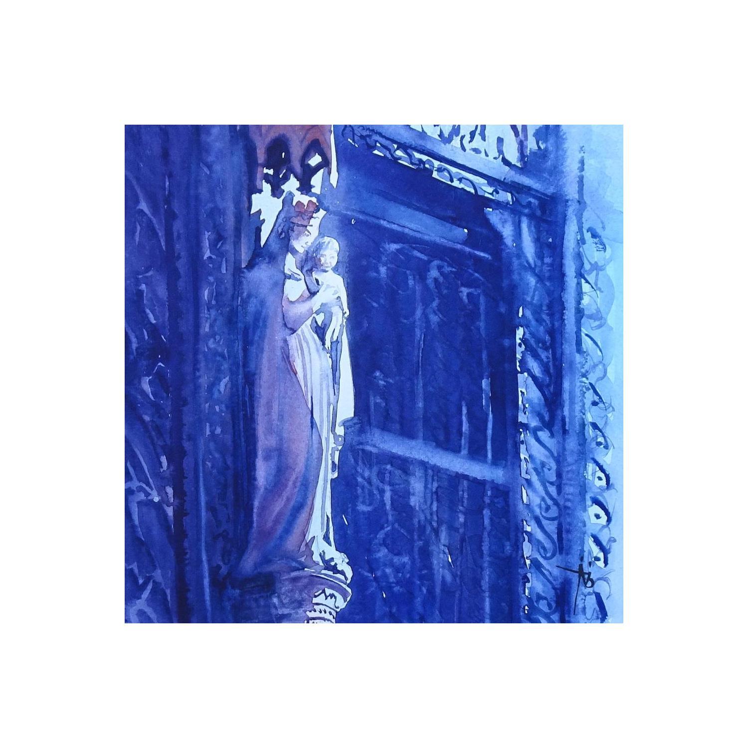 Painting Bienveillance maternelle  by Abbatucci Violaine | Painting Figurative Watercolor