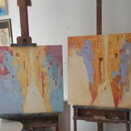 The artist used Oil medium on Canvas to create this Impressionism, Large size painting.