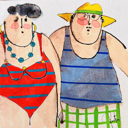 The artist used Acrylic, Watercolor, Gluing, Ink, Pastel media on Canvas to create this Naive art, Small size painting.