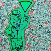 The artist used various techniques to create this small-format Pop art-style painting on canvas on the theme of Pop icons.
