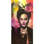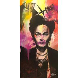 This unique and original contemporary artwork "Frida" on the subjects of Pop icons, Portrait has been created by the contemporary artist Mestres Sergi.