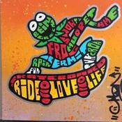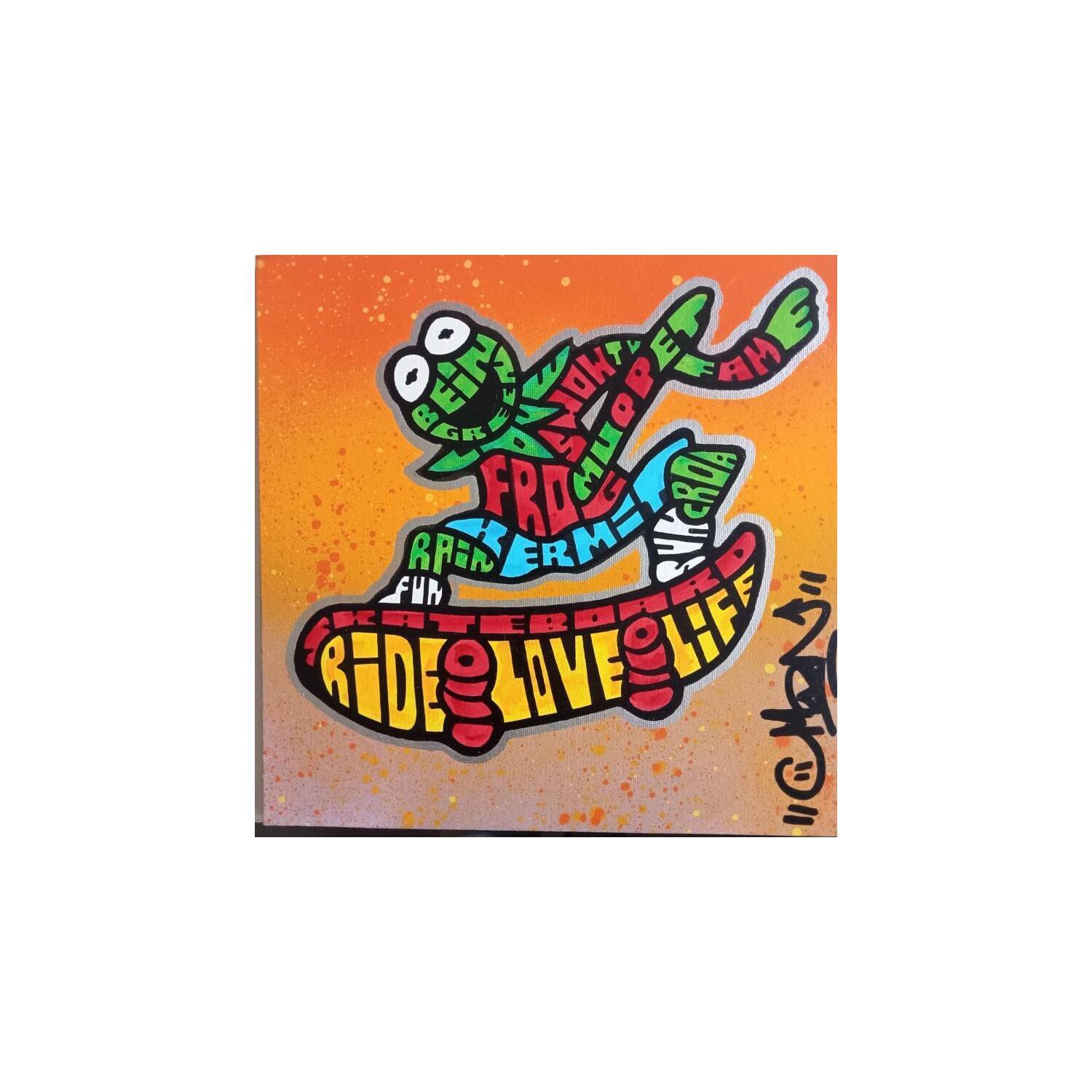 This unique and original contemporary artwork "Kermit Skate" on the subject of Pop icons has been created by the contemporary artist Cmon.