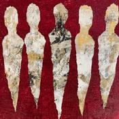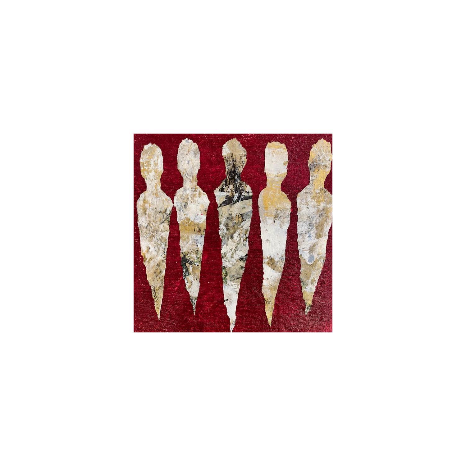 The artist used Acrylic, Gluing media on Canvas board to create this Raw art, Small size painting.