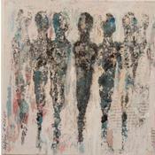 The artist used Acrylic, Gluing, Sand media on Canvas board to create this Raw art, Small size painting.