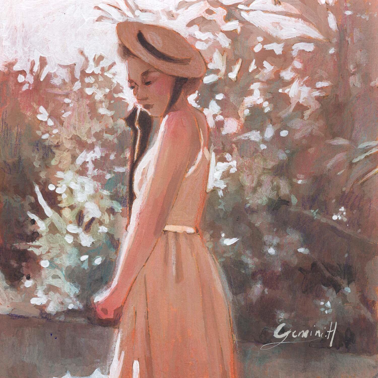This unique and original contemporary artwork "Une légère timidité" on the subjects of Nature, Portrait, Life style has been created by the contemporary artist Gemini. H .