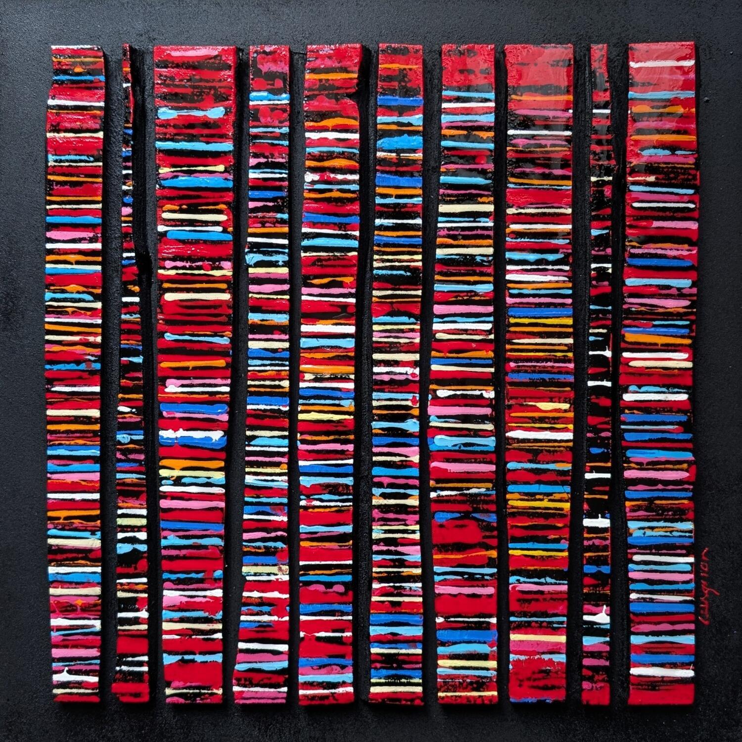 This unique and original contemporary artwork "Bc10 fine rouge multi" has been created by the contemporary artist Langeron Luc.