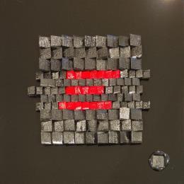 The artist used Acrylic, Wood, Gluing media on Dibon to create this Abstract, Small size painting.