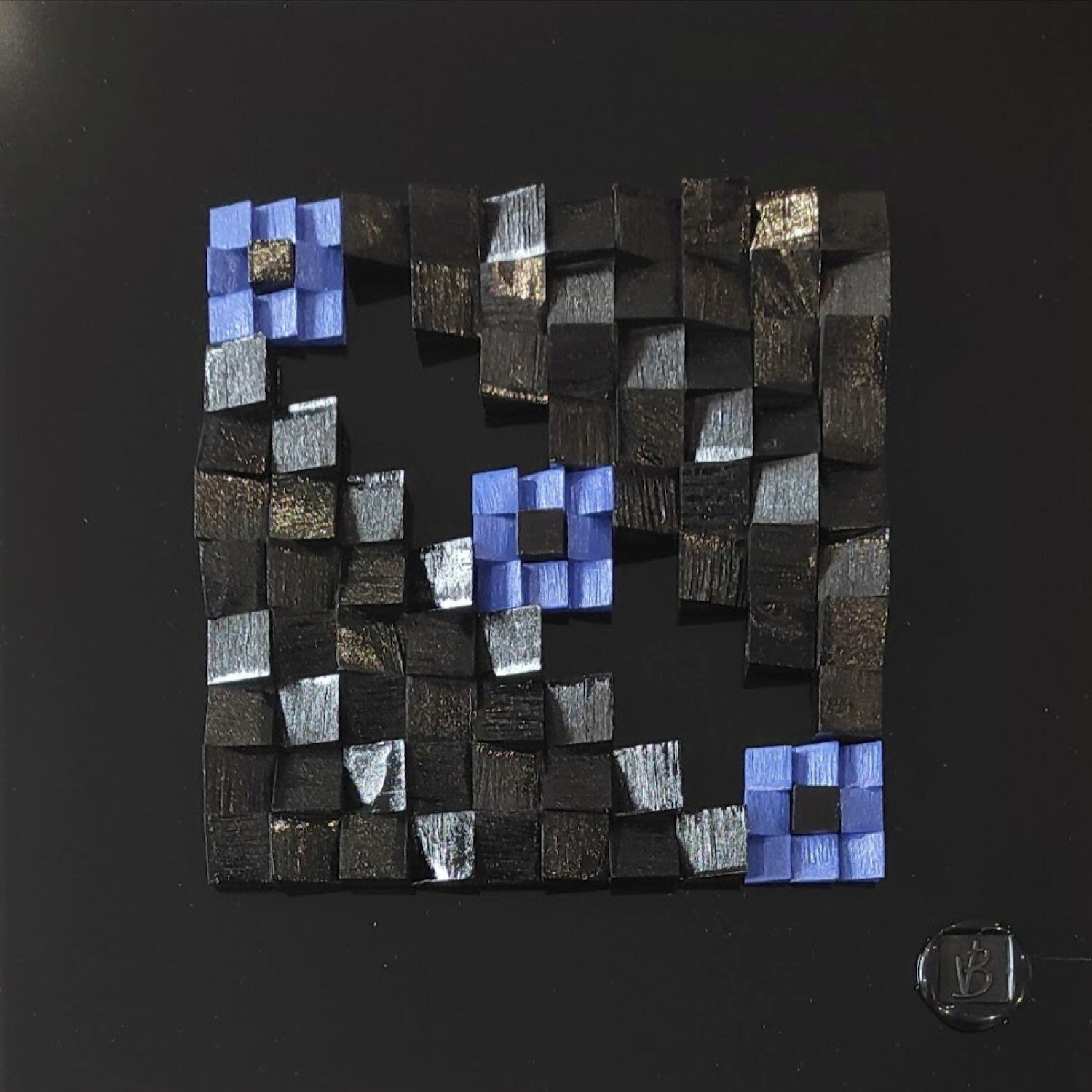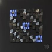 The artist used Acrylic, Wood, Gluing media on Dibon to create this Abstract, Small size painting.