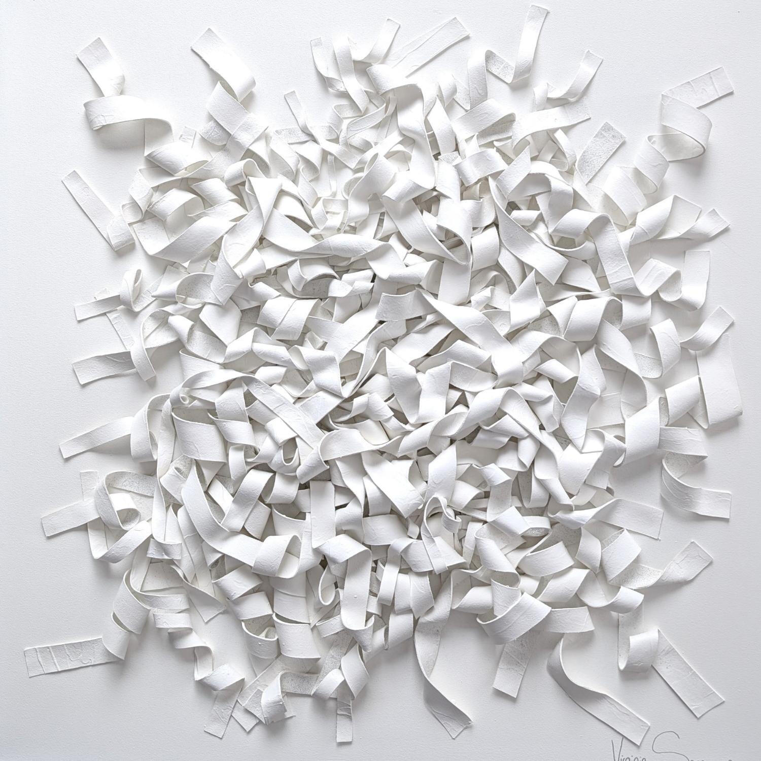 Three-dimensional canvas sculpture inspired by kinetic art. I wanted to capture the indescribable: that fragile and powerful moment when an emotion arises, seeks its form, intertwines with another, rises, hesitates, then bursts forth as if it were obvious. It is the inner labyrinth of every human being. Yours. Mine. Everyone's.
