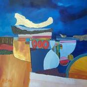 This unique and original contemporary artwork "Le sablier" on the subject of Landscapes has been created by the contemporary artist Lau Blou.