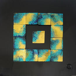 The artist used Gluing medium on Dibon to create this Abstract, Small size painting.