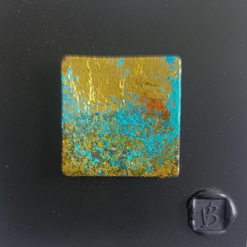 The artist used Gluing medium on Dibon to create this Abstract, Small size painting.