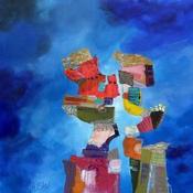 The artist used Gold leaf, Pastel, Acrylic, Cardboard, Gluing media on Cardboard to create this Abstract, Small size painting.