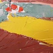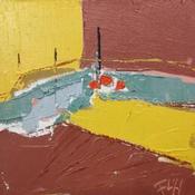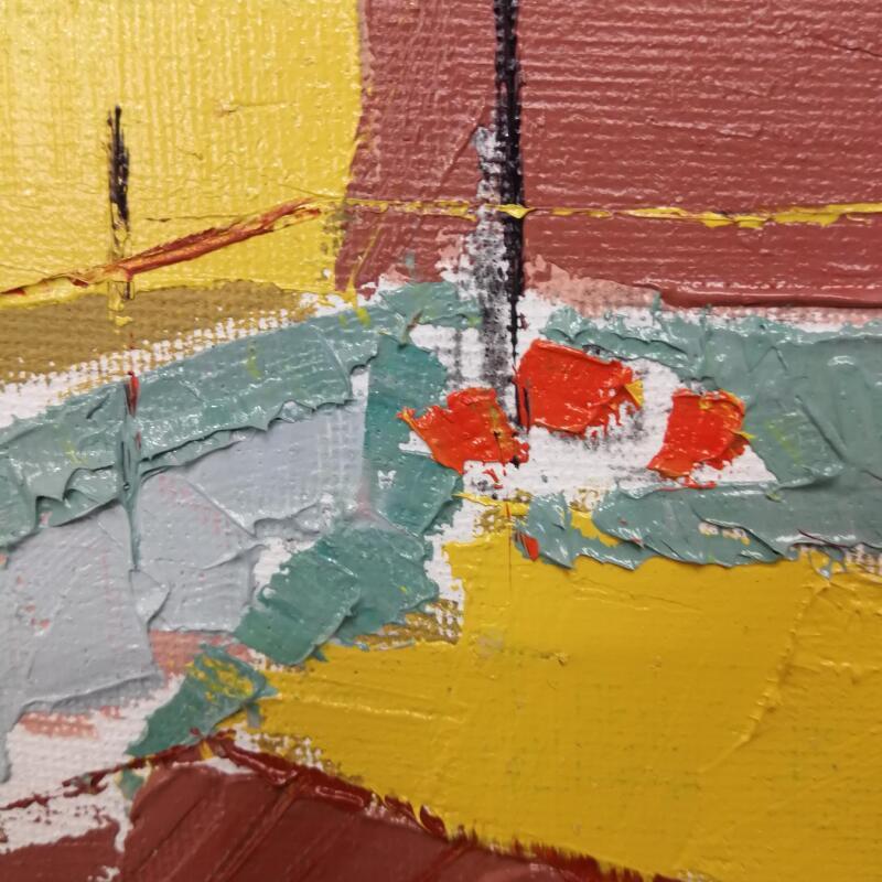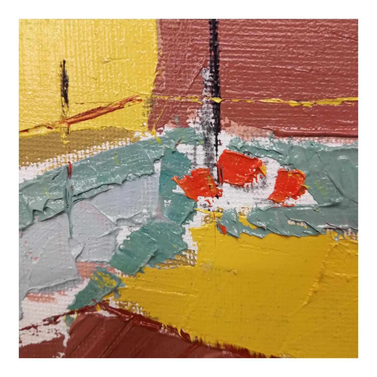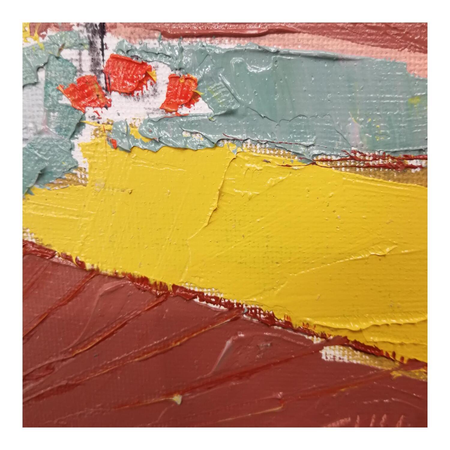 The artist used Oil medium on Canvas board to create this Abstract, Small size painting.