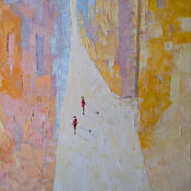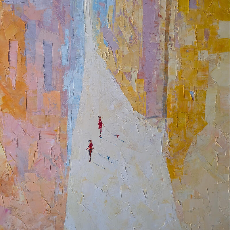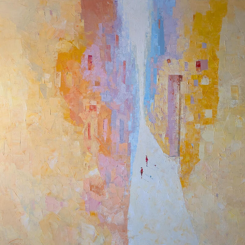 This unique and original contemporary artwork "Te voir illumine ma journée" on the subjects of Life style, Society, Urban has been created by the contemporary artist Tomàs.