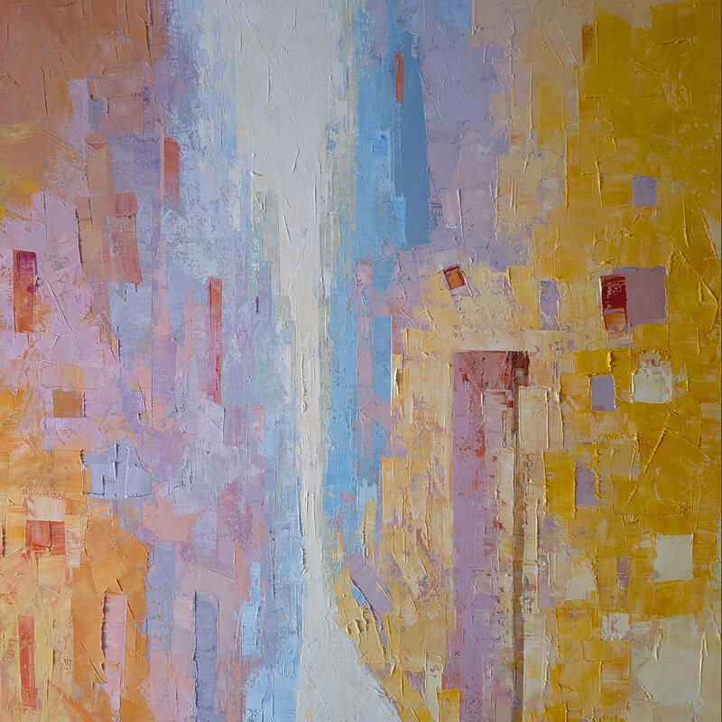 The artist used Oil medium on Canvas to create this Abstract, Large size painting.