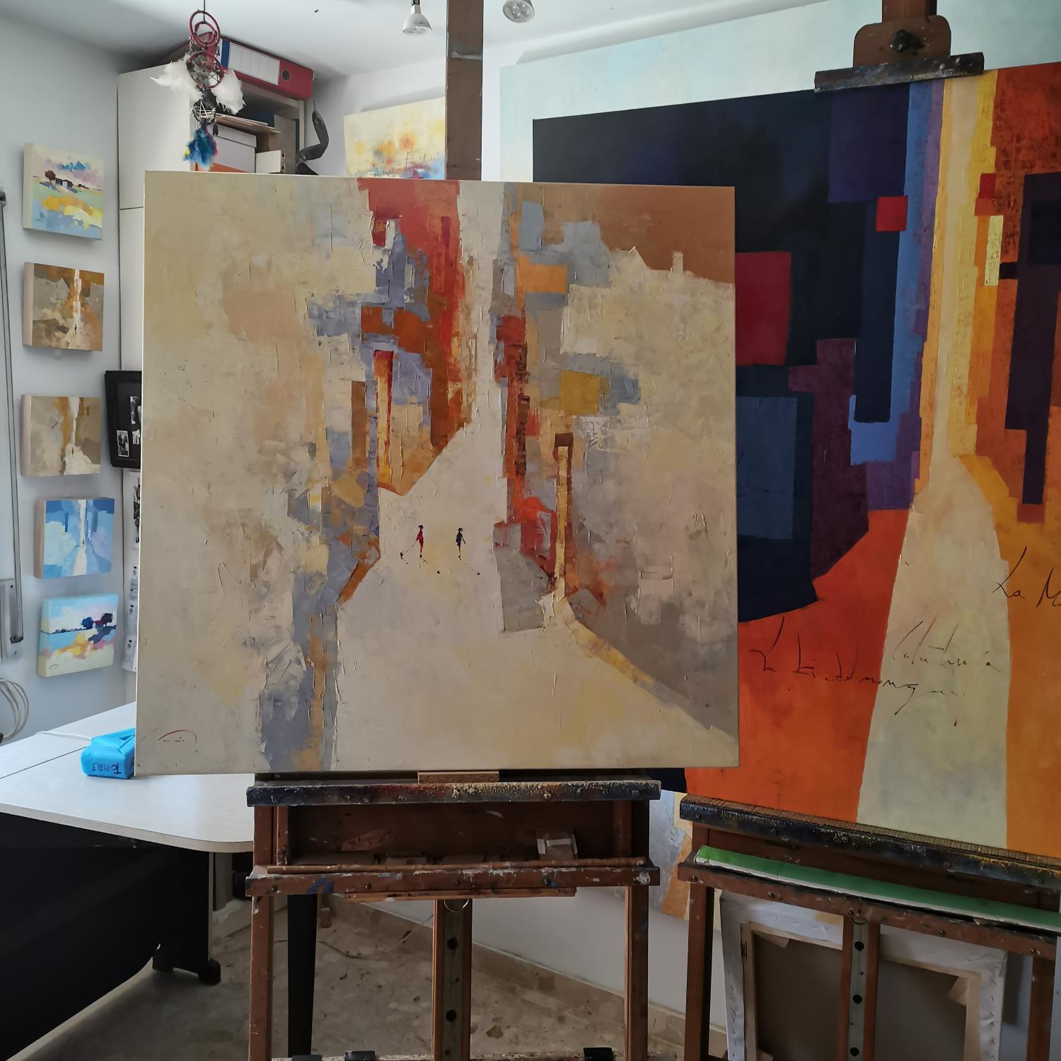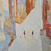 Painting Comment allez-vous  by Tomàs | Painting Abstract Society Urban Life style Oil