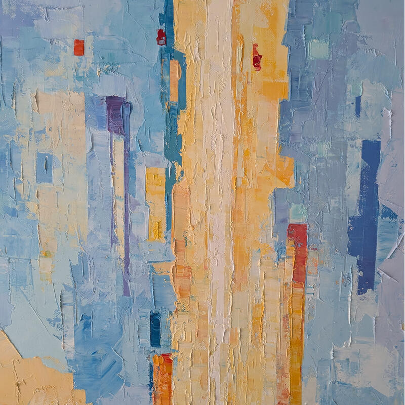 The artist used Oil medium on Canvas to create this Abstract, Large size painting.