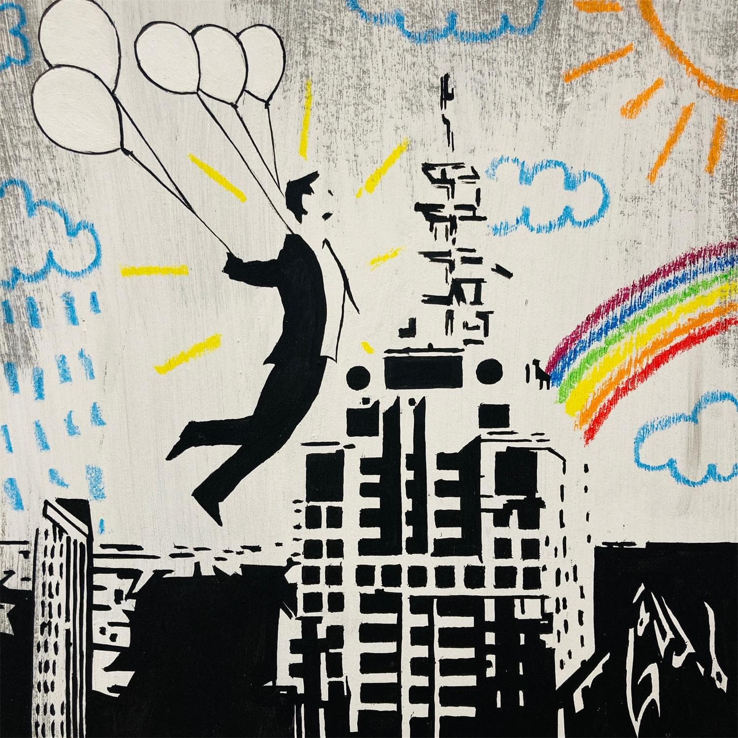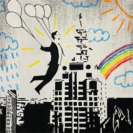 Painting Man with five balloons by Di Vicino Gaudio Alessandro | Painting Acrylic