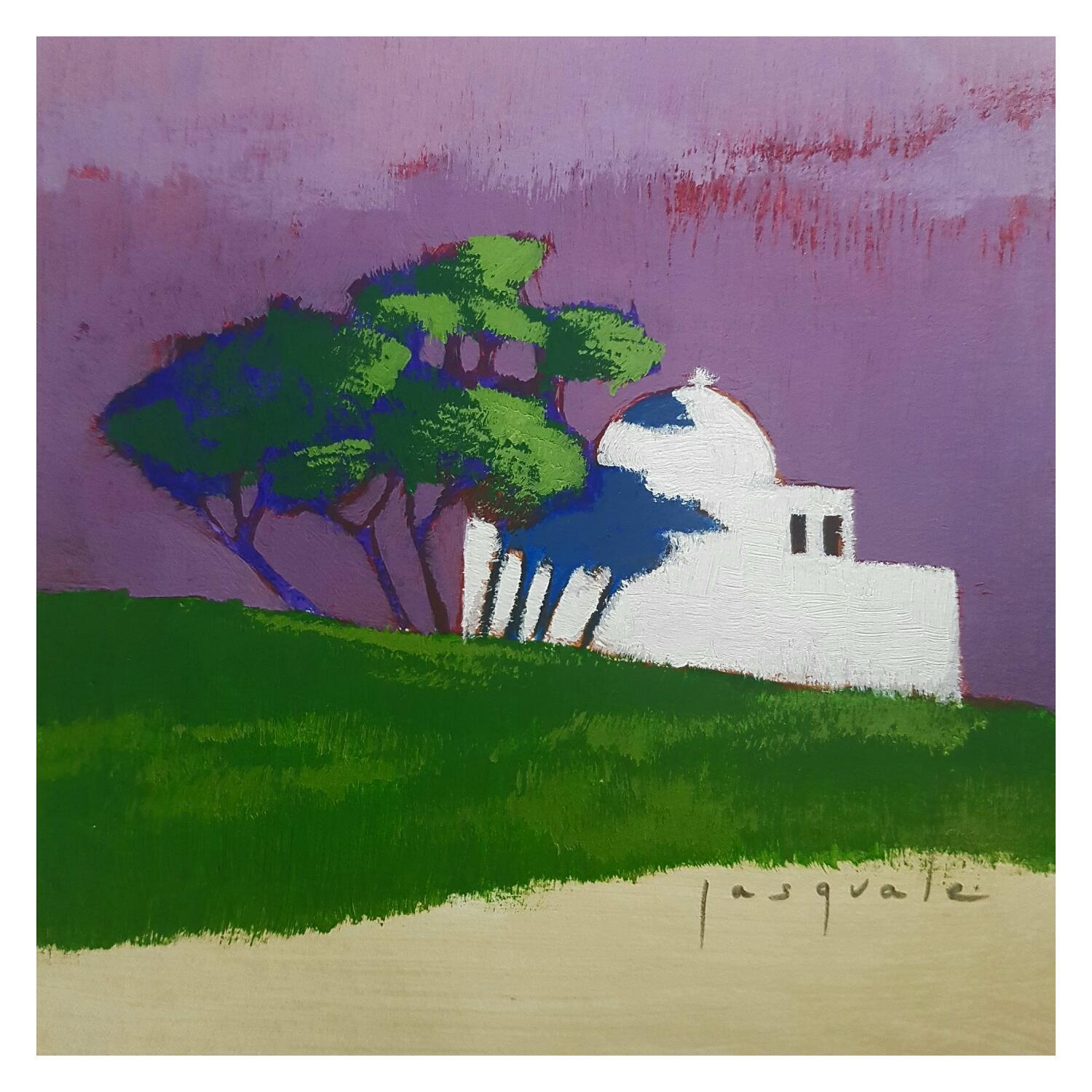 This unique and original contemporary artwork "Megalochori" on the subjects of Architecture, Nature, Landscapes has been created by the contemporary artist Pasquale.
