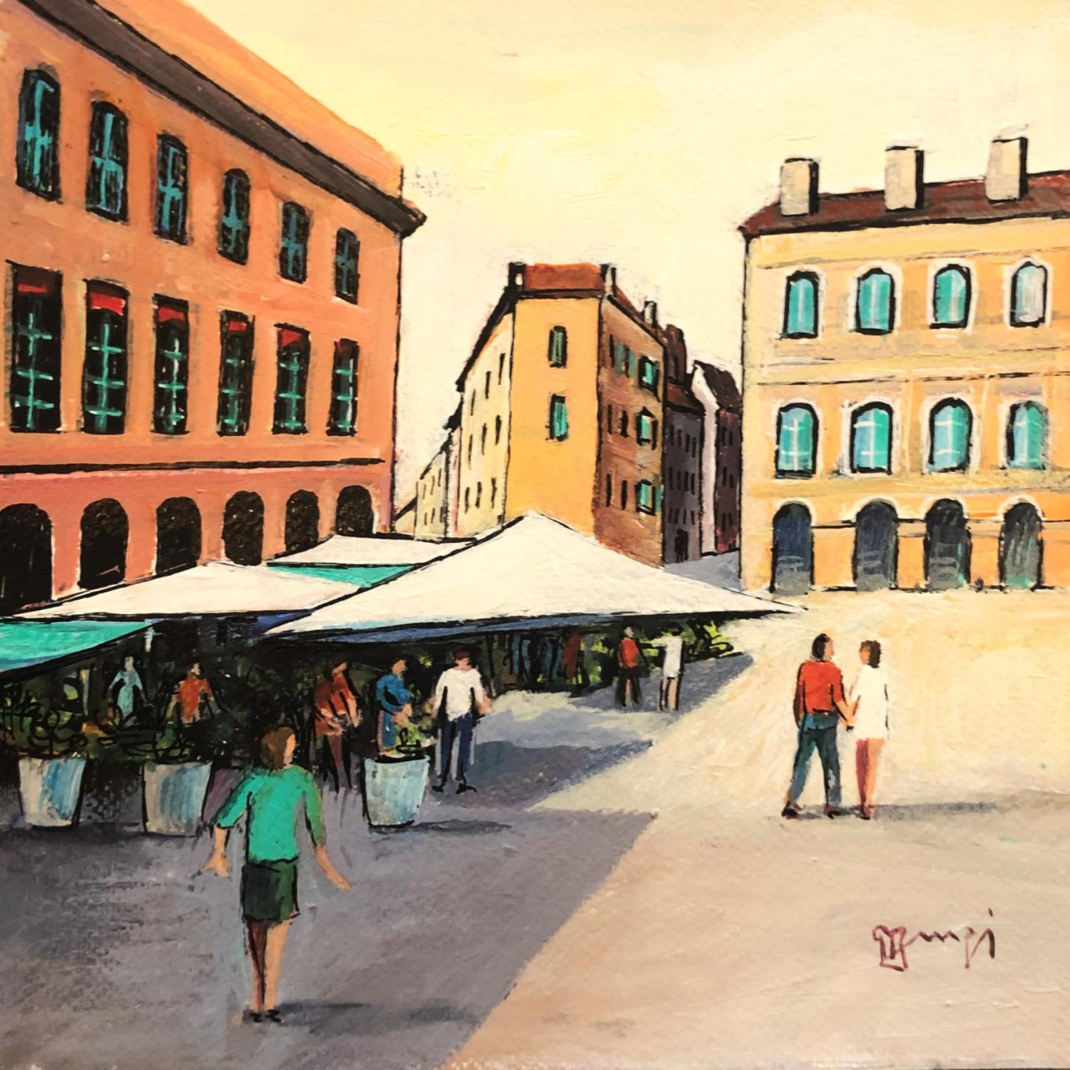This unique and original contemporary artwork "AR10 TOULOUSE MARCHE AUX FLEURS" on the subjects of Architecture, Life style, Urban has been created by the contemporary artist Burgi Roger.
