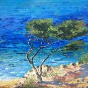 This unique and original contemporary artwork "Face à la mer" on the subject of Landscapes has been created by the contemporary artist Rey Ewa.