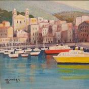 This unique and original contemporary artwork "Corse Bastia 2 bateaux AP93" on the subjects of Landscapes, Marine has been created by the contemporary artist Burgi Roger.