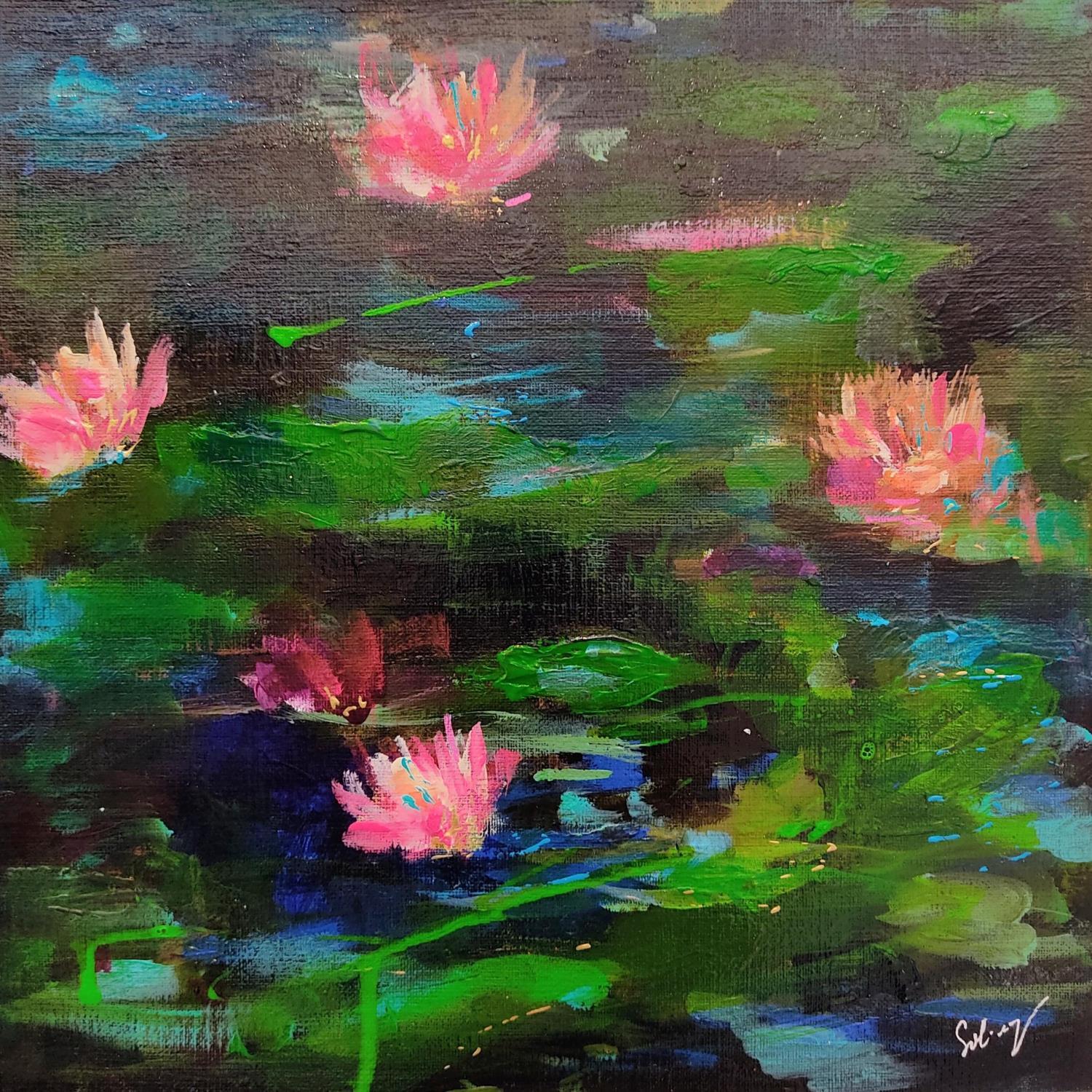 This unique and original contemporary artwork "Mon giverny" on the subjects of Landscapes, Nature has been created by the contemporary artist Solveiga.