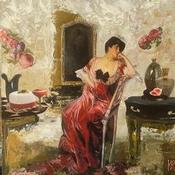 This unique and original contemporary artwork "Bella Rosa" on the subject of Life style has been created by the contemporary artist Romanelli Karine.