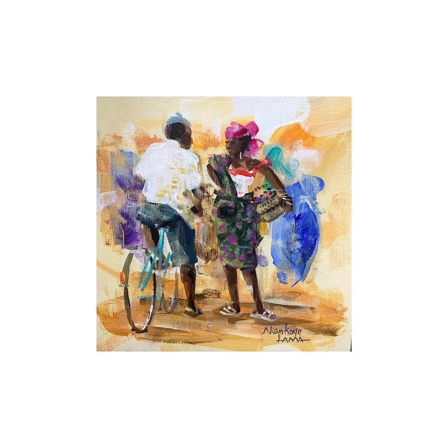 This unique and original contemporary artwork "LA RENCONTRE" on the subject of Life style has been created by the contemporary artist Lama Niankoye.