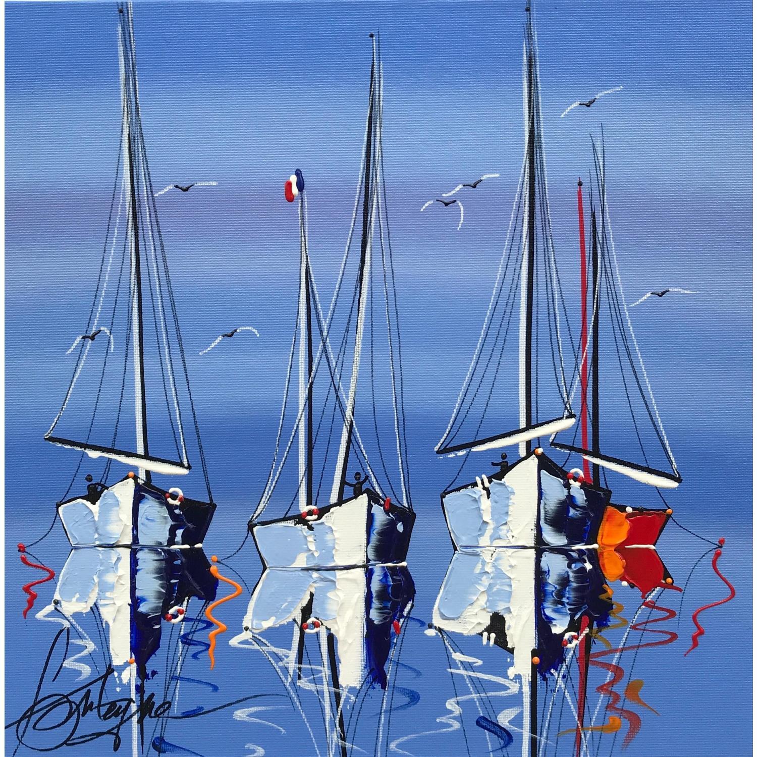 This unique and original contemporary artwork "Les heureux" on the subject of Marine has been created by the contemporary artist Fonteyne David.