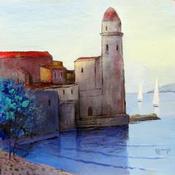 This unique and original contemporary artwork "AN218 COLLIOURE" on the subjects of Marine, Landscapes, Urban has been created by the contemporary artist Burgi Roger.