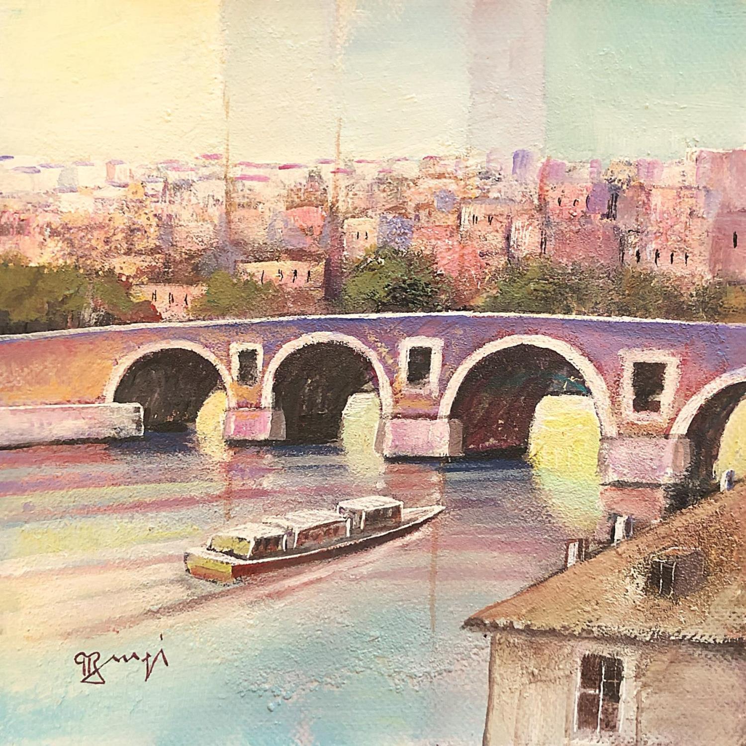 This unique and original contemporary artwork "AR11 TOULOUSE, LA PENICHE" on the subjects of Marine, Landscapes, Urban has been created by the contemporary artist Burgi Roger.