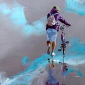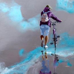 This unique and original contemporary artwork "Vélo de plage assorti" on the subjects of Marine, Life style has been created by the contemporary artist Sand.