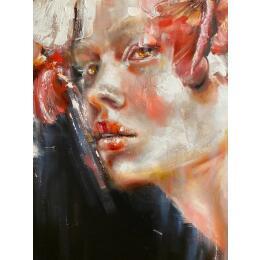 Fiore d'invernoPainting Fiore d'inverno by Abbondanzia Monica | Painting Figurative Portrait Oil Acrylic