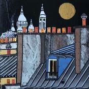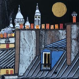 Painting Bons baisers de la butte by Lovisa | Painting Figurative Urban Acrylic Gluing Posca Gold leaf Upcycling