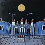 Painting La ville dort by Lovisa | Painting Figurative Urban Acrylic Gluing Posca Gold leaf Upcycling