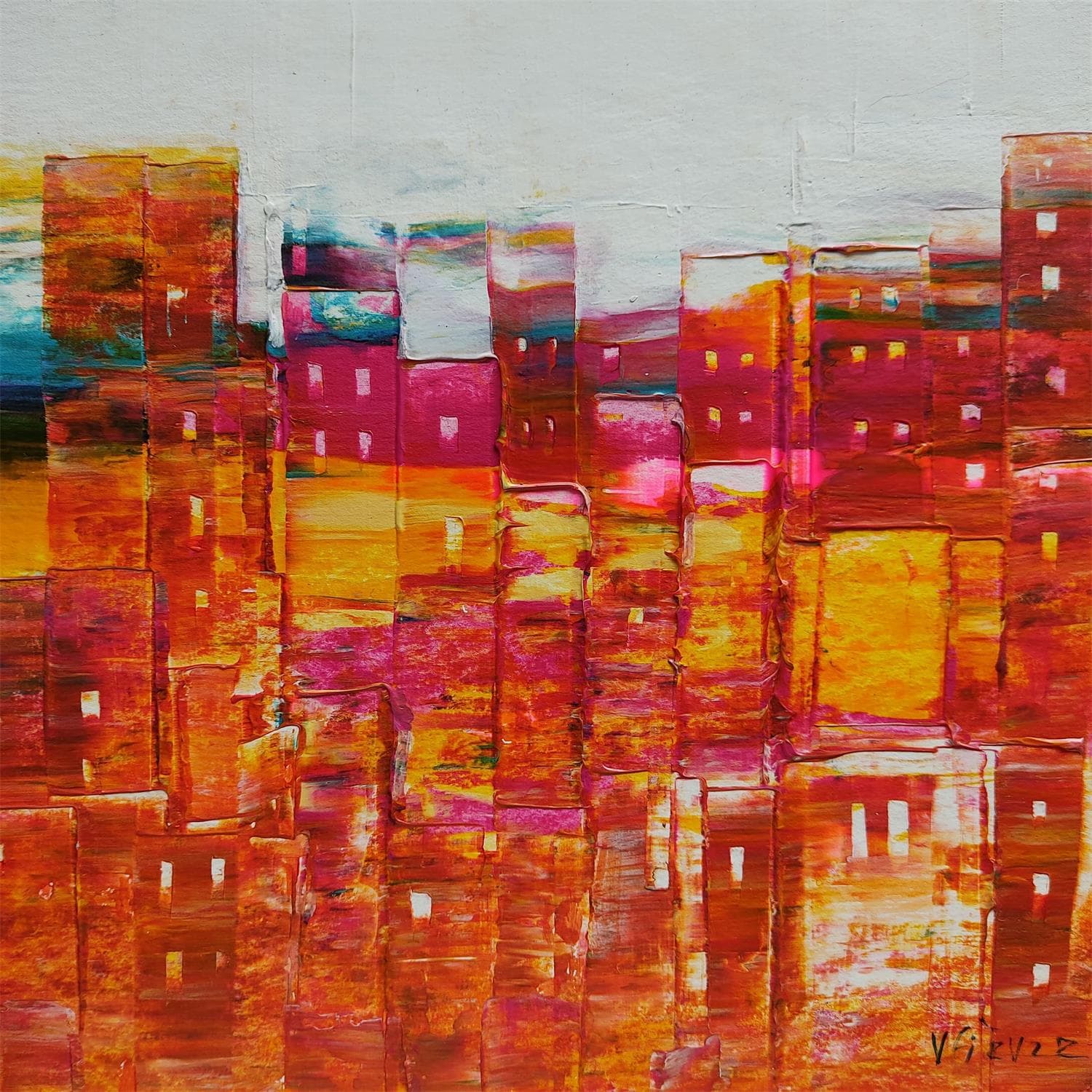 This unique and original contemporary artwork "Faubourgs en couleur" on the subject of Urban has been created by the contemporary artist Fièvre Véronique.