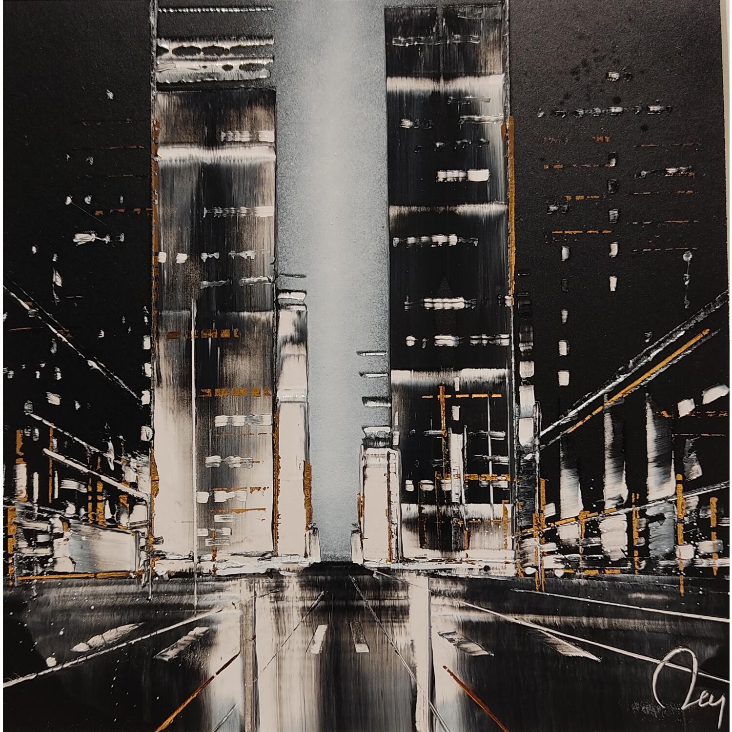 Although he has achromatopsia (absence of color vision), Julien Rey takes us on a journey through his paintings to urban landscapes. Julien Rey's story begins like all great stories: with an impossible dream. With achromatopsia, the artist sees only in black and white. Yet, this condition did not prevent him from traveling to the borders of Burma, from changing his life (he became a Buddhist monk there) or from embarking on art. From his trip to Burma, he brought back a perfect mastery of gold leaf, a characteristic element of his work. His technique based on lacquer worked with a knife and gold leaf inlays places light at the center of his works. Marked by Zen philosophy, he creates minimal compositions that appear as suspended moments, poetic pauses.