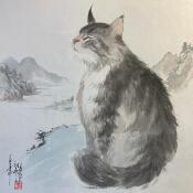 Cat  3Painting Cat  3 by Yu Huan Huan | Painting Figurative Animals Ink