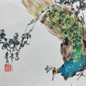 This unique and original contemporary artwork "Peacock " on the subject of Animals has been created by the contemporary artist Yu Huan Huan.