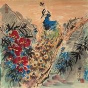 This unique and original contemporary artwork "Peacock " on the subject of Animals has been created by the contemporary artist Yu Huan Huan.
