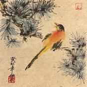 This unique and original contemporary artwork "Sing" on the subjects of Animals, Nature has been created by the contemporary artist Yu Huan Huan.